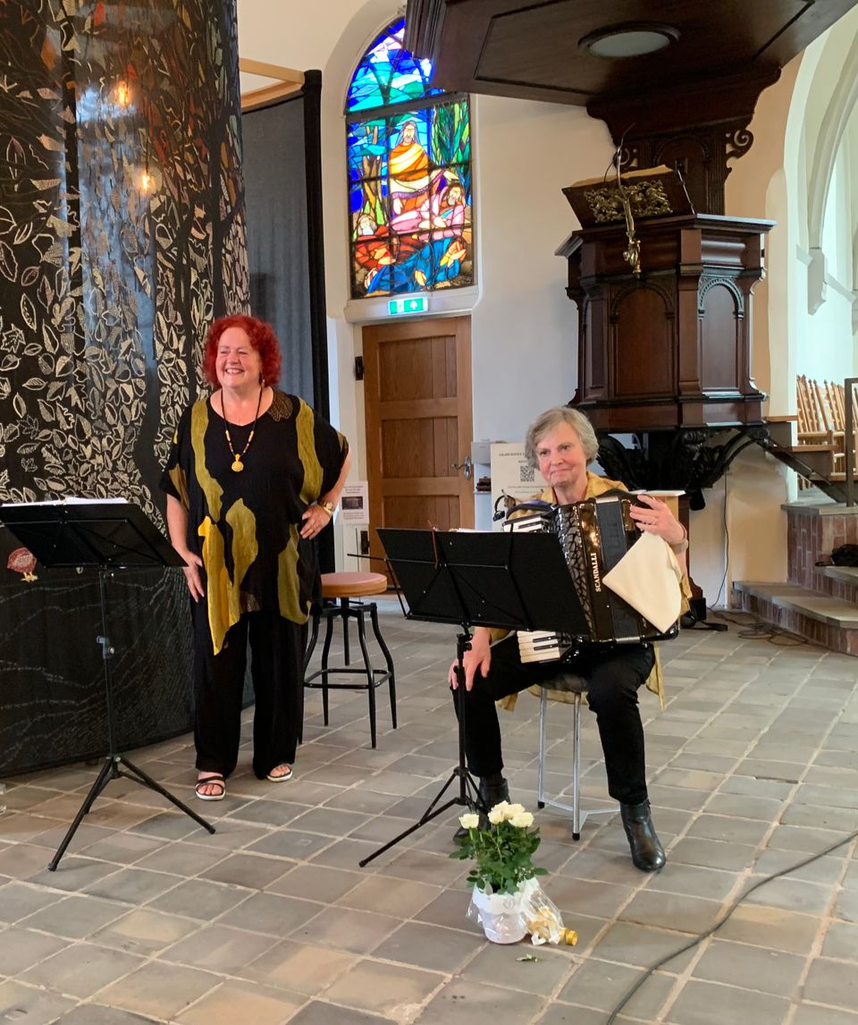 Het duo‘ Mayn Kholem ‘, wat ‘mijn droom ‘ betekent, brengt Jiddische liederen ten gehoren. Dat zijn liederen van de joden, die oorspronkelijk in Oost- Europa woonden en het is eigenlijk een verzameling van allerlei verschillende soorten liederen, geschreven in de Jiddische taal, van volksliedjes tot de prachtigste gedichten die op muziek zijn gezet. Ze zijn afwisselend vrolijk, triest en alles wat daartussen zit.