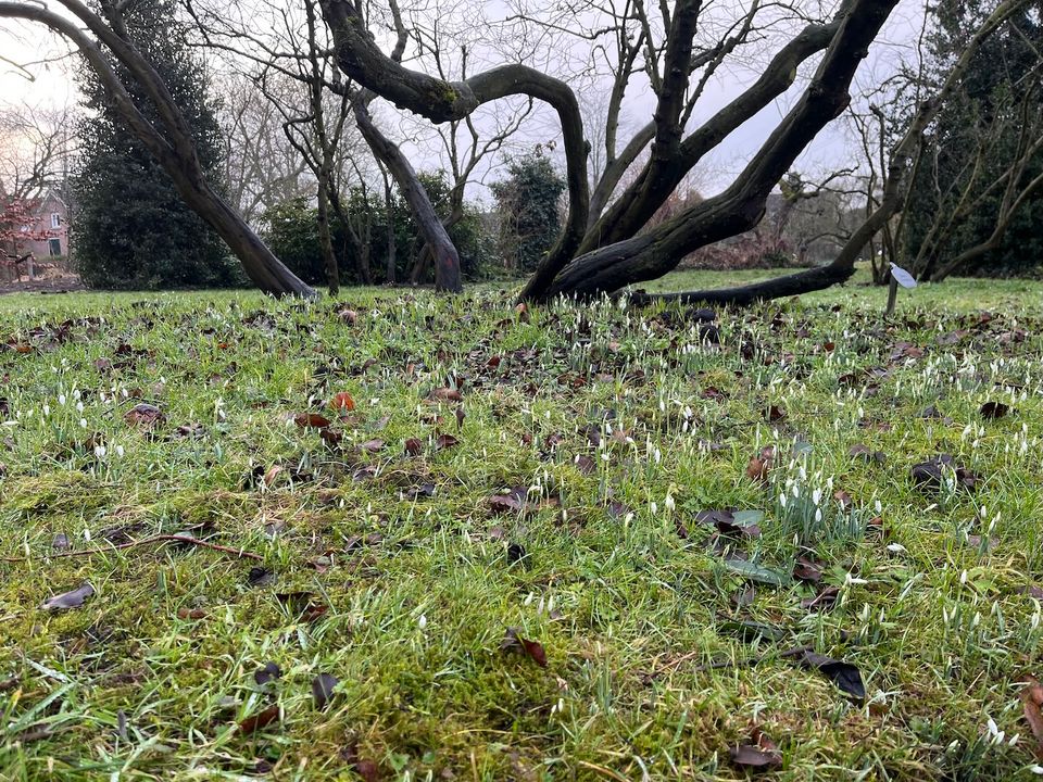 Na de winterperiode staat de poort van de Overtuin weer open voor alle bezoekers. Niet voor niets zo vroeg in het jaar, want in de tuin laten duizenden sneeuwklokjes zich al zien, als voorbode van de lente. Vaak onder de grote monumentale bomen, die nog geen blad dragen, waardoor de structuur van de tuin goed te zien is. Naast stinzenplanten staan ook verschillende struiken/heesters al in bloei. Zoals het heerlijk geurende winterzoet, de toverhazelaar, de bijna uitgebloeide winterkamperfoelie en de prachtige schijnhazelaar. Er is al genoeg te beleven in deze ontwakende tuin.