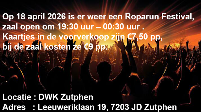 Op 18 april openen de deuren weer voor een avond vol dansbare muziek, goede vibes en één groot feest! Kom naar het festival van Roparun Team Zutphen, dans mee en steun tegelijk de Roparun voor het goede doel.