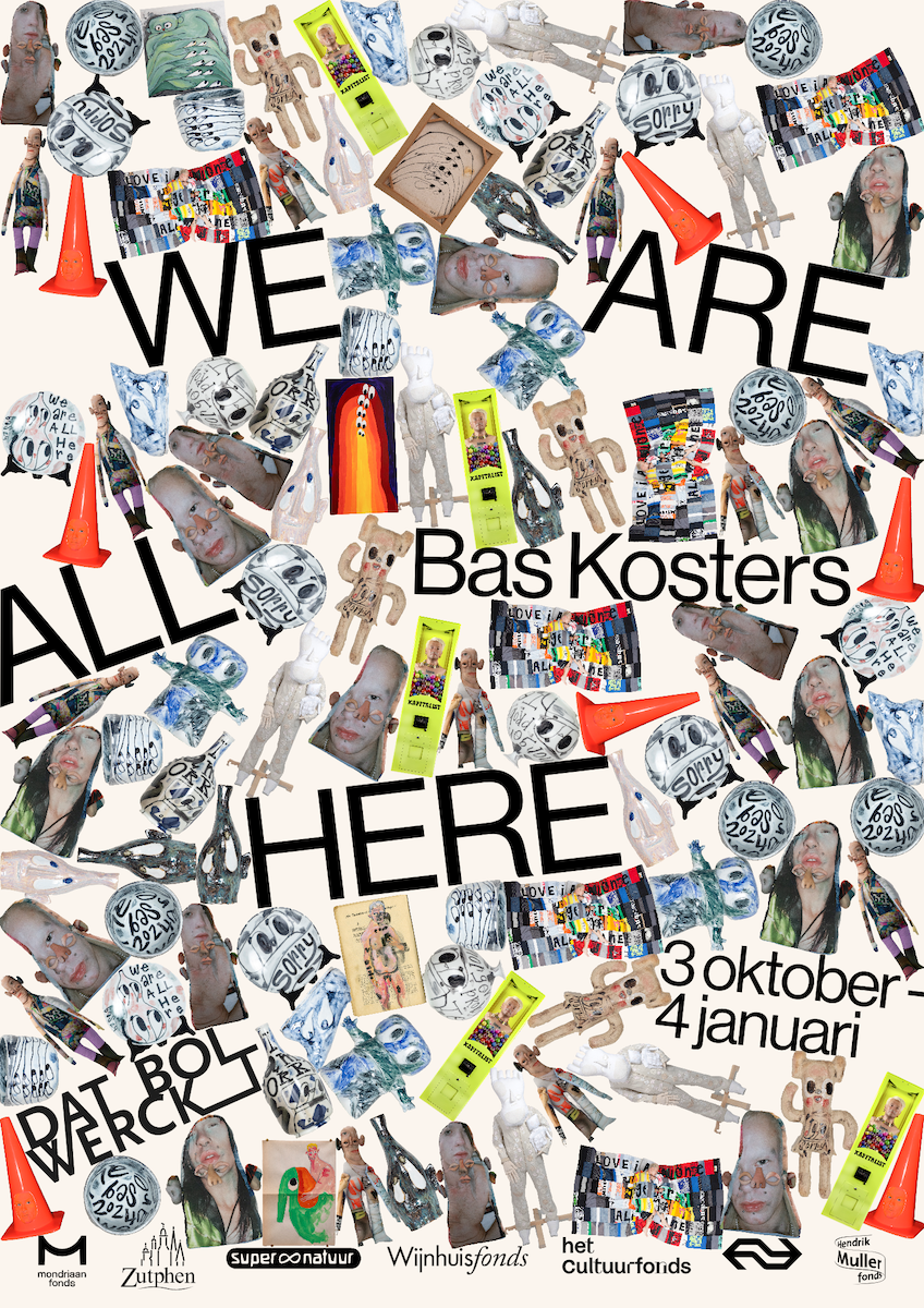 Dat Bolwerck presenteert We Are All Here met werk van Bas Kosters (1977, Zutphen). In een uiterst persoonlijke tentoonstelling ontrafelt Bas Kosters zijn zoektocht naar zijn eigen plek op zijn geboortegrond. We Are All Here is een onderzoeksproject naar hoe we ruimte kunnen innemen én hoe we op harmonieuze wijze samen kunnen leven.