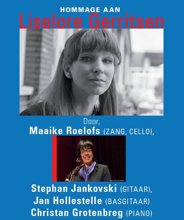 Ensemble met Maaike Roelofs (zang, cello), Stefan Jankovski en Jan Hollestelle (gitaar) en Christian Grotenberg (piano) brengen een hommage aan een van Neerlands bekendste kleinkunstenaars: Liselore Gerrritsen. Ontroerende teksten en prachtige muziek. Een feest van herkenning.