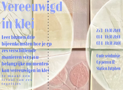Tijdens deze workshop duik je in de wereld van klei, creativiteit en ambacht. In drie lessen ga je aan de slag met het maken van zes unieke tegeltj...