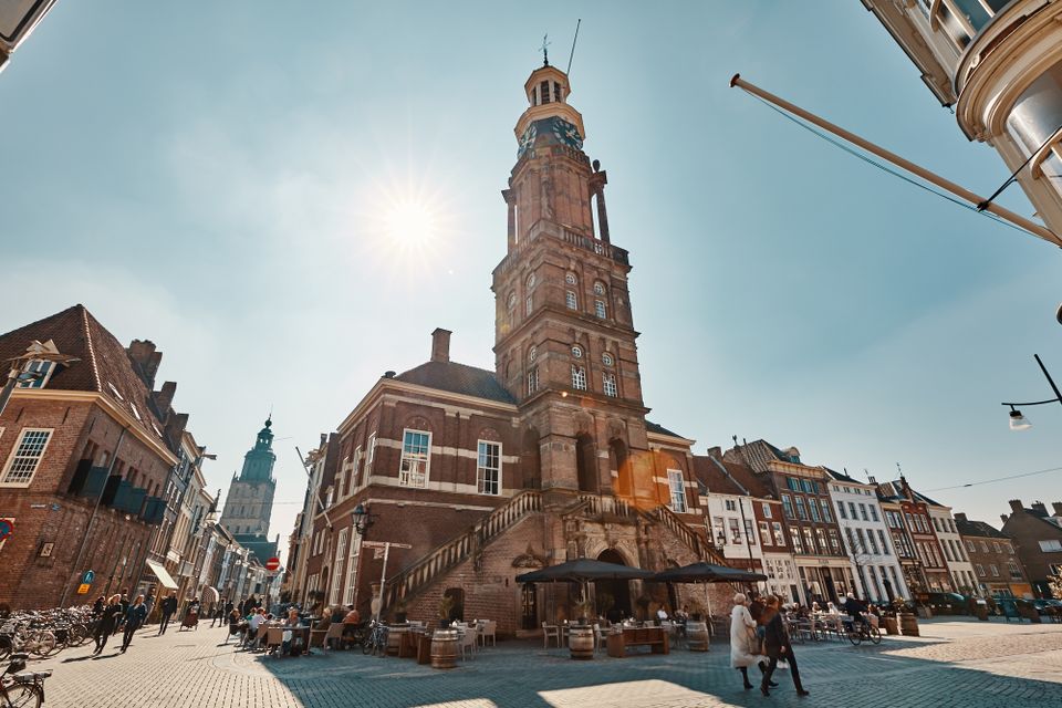 De Wijnhuistoren, gelegen op de hoek van de Groenmarkt, is een favoriete plek van inwoners en bezoekers. Vroeger was deze toren een belangrijk centrum voor handel, rechtspraak en stadsbestuur. Sinds 1644 klinkt hier elk kwartier het carillon, dat nog steeds regelmatig bespeeld wordt door stadsbeiaardier Frans Haagen. Op donderdag tijdens de wekelijkse markt en in de zomermaanden ook op zaterdag, brengt zijn spel een unieke sfeer in de binnenstad. De Wijnhuistoren is elke donderdag, vrijdag, zaterdag en zondag gratis te beklimmen om 13.00, 14.00, 15.00 en 16.00 uur. Geniet van een prachtig uitzicht over de historische binnenstad.